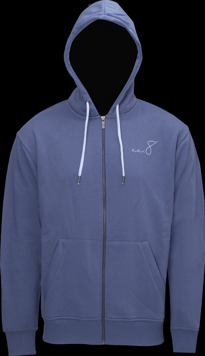 No.8 Hoodie med zip blå stl. S - XXL