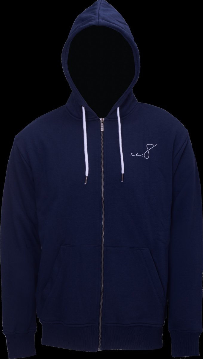 No.8 Hoodie med zip marinblå stl. S - XXL